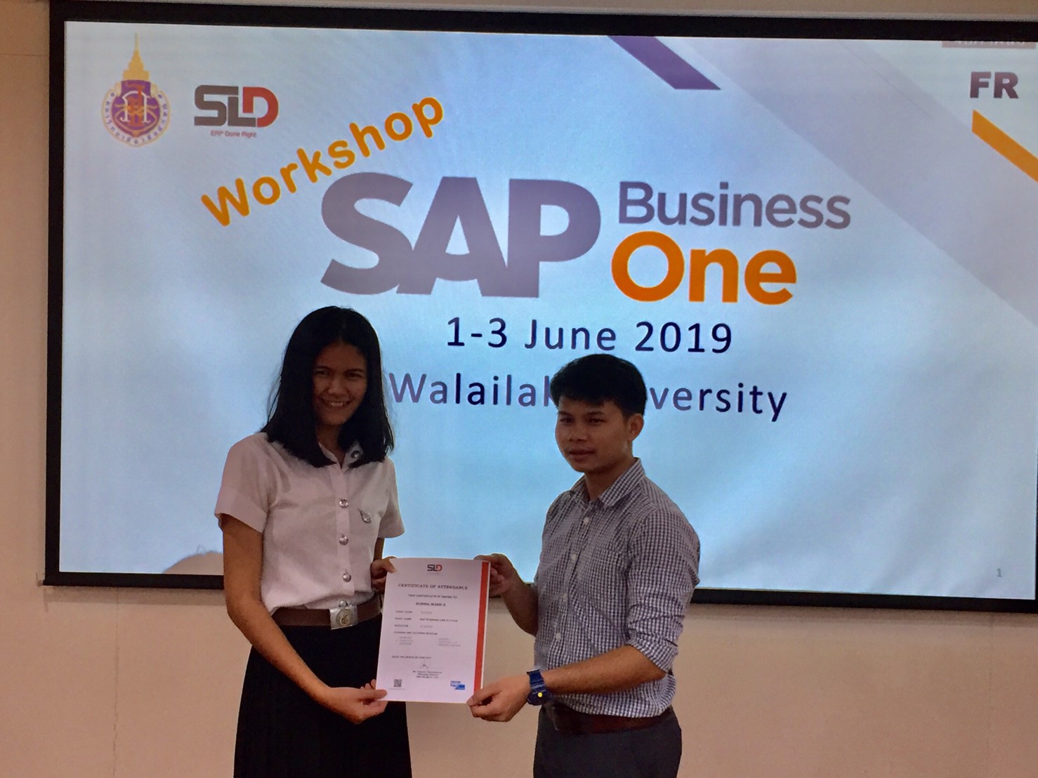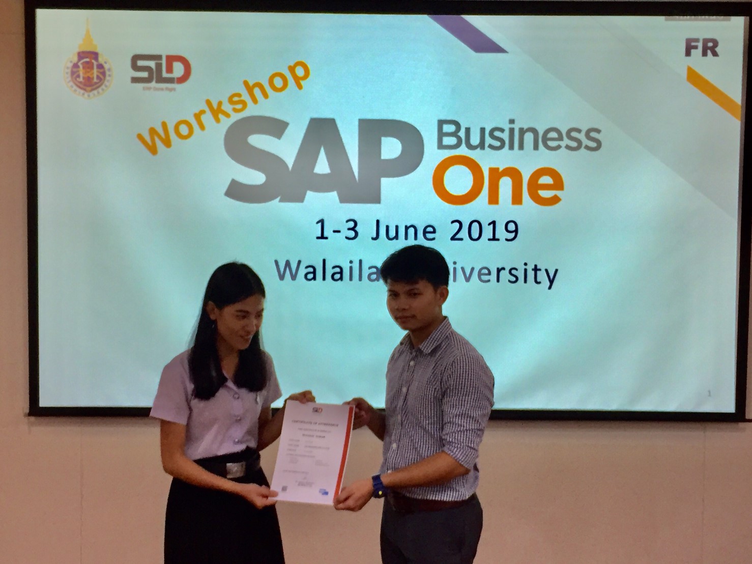 พิวเตอร์ขั้นสูงทางการบัญชี (SAP Business One) รุ่นที่ 3 ให้กับนักศึกษาสาขาวิชาการบัญชีชั้นปีที่ 3 จำนวนกว่า 30 คน ระหว่างวันที่ 1 – 3 มิถุนายน 2562 ณ ห้องปฏิบัติการคอมพิวเตอร์ฯ มหาวิทยาลัยวลัยลักษณ์ ซึ่งได้รับความร่วมมือจากบริษัท ศาลาแดง จำกัด