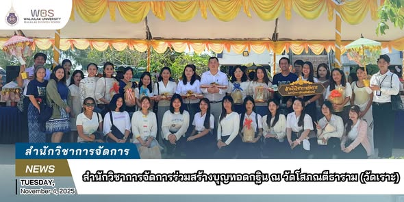 สำนักวิชาการจัดการ มหาวิทยาลัยวลัยลักษณ์ ได้ร่วมสืบสานประเพณีอันดีงามและสร้างบุญกุศลครั้งใหญ่ โดยเข้าร่วมพิธีทอดกฐินประจำปี 2568 ณ วัดโสภณตีธาราม (วัดเราะ) เมื่อวันอังคารที่ 4 พฤศจิกายน 2568 โดยมีผู้บริหาร คณาจารย์ และบุคลากรของสำนักวิชาการจัดการ เข้าร่วมพิธีอย่างพร้อมเพรียงกันตั้งแต่เวลา 08.30 – 13.00 น. บรรยากาศในพิธีเต็มไปด้วยบรรยากาศแห่งความอิ่มบุญและศรัทธา