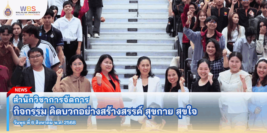 เมื่อวันที่ 6 สิงหาคม 2568 สำนักวิชาการจัดการ มหาวิทยาลัยวลัยลักษณ์ ได้จัดกิจกรรม “คิดบวกอย่างสร้างสรรค์ สุขกาย สุขใจ” ณ อาคารไทยบุรี เพื่อสร้างแรงบันดาลใจและเสริมสร้างทัศนคติเชิงบวกแก่ศิษย์เก่า ศิษย์ปัจจุบัน และบุคลากรของสำนักวิชา