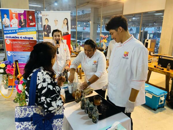 งานนี้สำนักวิชาการจัดการ ม.วลัยลักษณ์ จัดเต็ม! ส่งทีมเชฟมือโปรและนักศึกษาโปรเชฟมาร่วมครีเอทเมนูสุดพิเศษในงาน เพื่อแสดงให้เห็นว่า “วัตถุดิบบ้านเรา เอามาทำอะไรกะหรอย!” สะท้อนแนวคิด “เก่งวิชาการ เชี่ยวชาญการปฏิบัติ” ของหลักสูตรได้อย่างชัดเจน