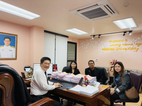 วันที่ 3 กุมภาพันธ์ 2569 – คณะผู้บริหารสำนักวิชาการจัดการ มหาวิทยาลัยวลัยลักษณ์ นำโดย ผู้ช่วยศาสตราจารย์ ดร.พิมพ์ลภัส พงศกรรังศิลป์ คณบดีสำนักวิชาการจัดการ พร้อมด้วยทีมผู้บริหารประกอบด้วย ผู้ช่วยศาสตราจารย์ ดร.ประสิทธิ์ รัตนพันธ์ รองคณบดีสำนักวิชาการจัดการ และ อาจารย์นิรมล ระหว่างงาม ผู้ช่วยคณบดีฝ่ายกิจการต่างประเทศ เข้าพบ ดร.มงคล ธีระนานนท์ รองอธิการบดีฝ่ายความสัมพันธ์และการพัฒนามหาวิทยาลัยวลัยลักษณ์ ณ อาคารบริหาร มหาวิทยาลัยวลัยลักษณ์ เพื่อปรึกษาหารือและวางแนวทางสนับสนุนการดำเนินงานด้านกิจการต่างประเทศสำหรับนักศึกษา ในการยกระดับ World Ranking ของมหาวิทยาลัย