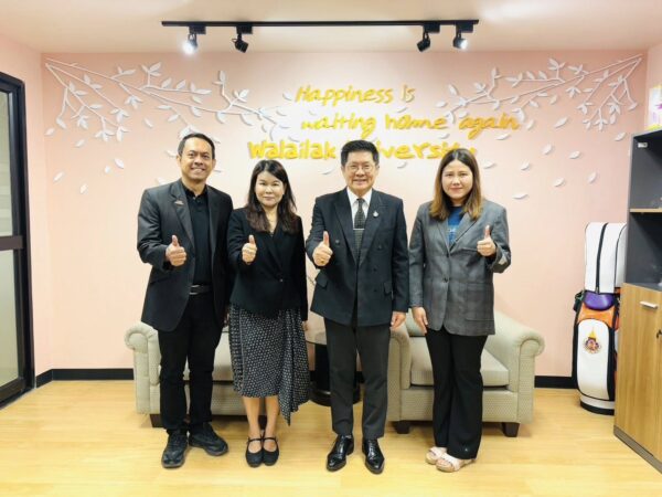 วันที่ 3 กุมภาพันธ์ 2569 – คณะผู้บริหารสำนักวิชาการจัดการ มหาวิทยาลัยวลัยลักษณ์ นำโดย ผู้ช่วยศาสตราจารย์ ดร.พิมพ์ลภัส พงศกรรังศิลป์ คณบดีสำนักวิชาการจัดการ พร้อมด้วยทีมผู้บริหารประกอบด้วย ผู้ช่วยศาสตราจารย์ ดร.ประสิทธิ์ รัตนพันธ์ รองคณบดีสำนักวิชาการจัดการ และ อาจารย์นิรมล ระหว่างงาม ผู้ช่วยคณบดีฝ่ายกิจการต่างประเทศ เข้าพบ ดร.มงคล ธีระนานนท์ รองอธิการบดีฝ่ายความสัมพันธ์และการพัฒนามหาวิทยาลัยวลัยลักษณ์ ณ อาคารบริหาร มหาวิทยาลัยวลัยลักษณ์ เพื่อปรึกษาหารือและวางแนวทางสนับสนุนการดำเนินงานด้านกิจการต่างประเทศสำหรับนักศึกษา ในการยกระดับ World Ranking ของมหาวิทยาลัย