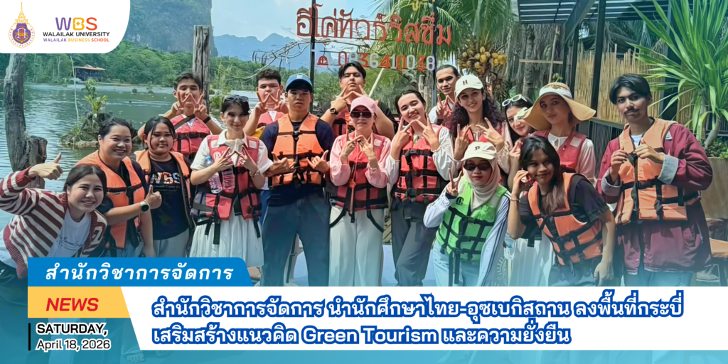 On Saturday, April 18, 2026, the School of Management organized the “Green Tourism Study” activity, leading a group of 15 Thai students and exchange students from Tashkent University of Information Technologies (TUIT), Uzbekistan, to Krabi province. The initiative aimed to deepen their understanding of eco-friendly business management and green tourism innovations.