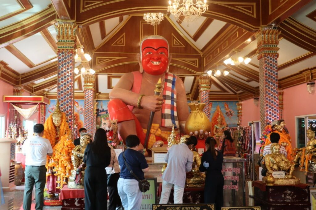 Next, the route leads to Wat Chedi for worshiping Ai Khai, before moving on to the shrine of Phor Muang Thong—renowned for its impressive fortune sticks—and then to the shrine of Pueng Tao Kong Sai Si, also known as Ta Pa Khao Shrine, located in Pak Nam Sichon. Further stops include the Krom Luang Chumphon Khet Udomsak Shrine and, finally, Wat Suchon, where visitors offer prayers to Thao Wessuwan (Phor Ruay). Along the way, numerous food outlets and shops selling local products are available for visitors.