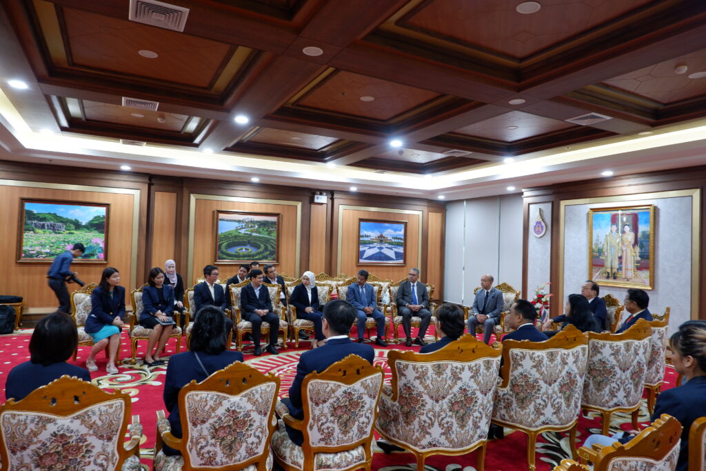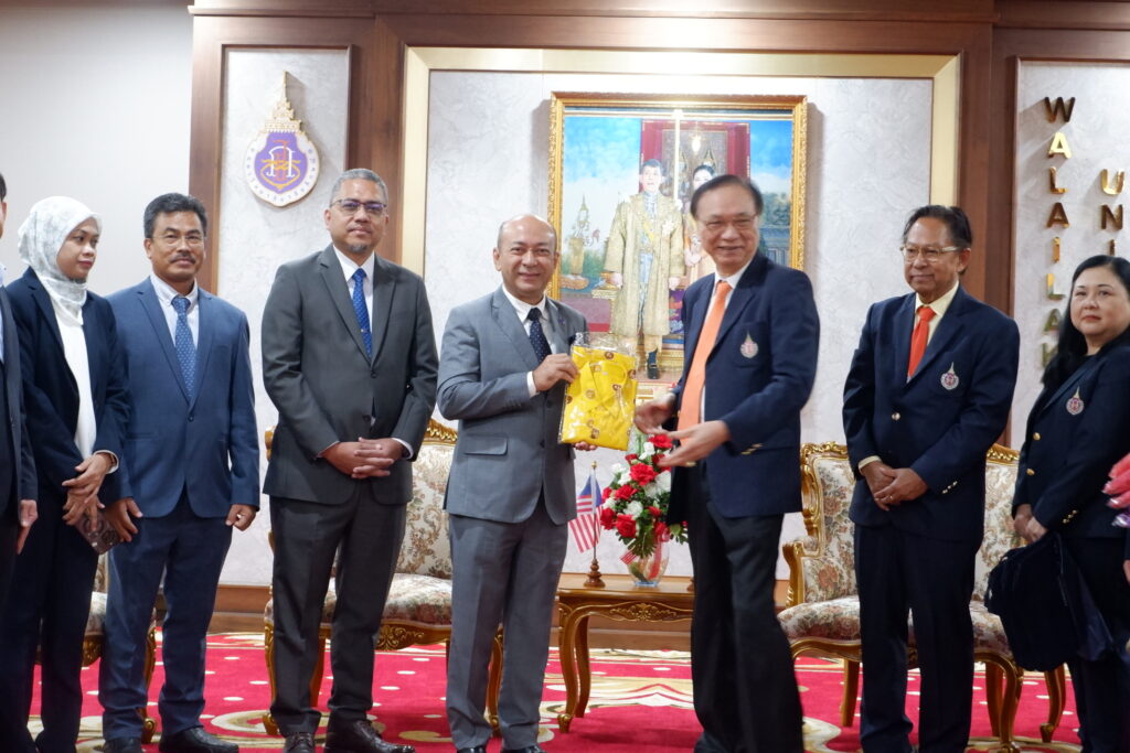 On Monday, January 20, 2025, from 9:00 AM to 11:00 AM, Walailak University, led by President Prof. Dr. Sombat Thamrongthanyawong, along with the university’s executive team, including Assist. Prof. Dr. Pimlapas Pongsakornrungsilp, Acting Dean of the School of Management, and Supicha Vilaisri, Acting Assistant Dean for International Affairs of the School of Management, warmly welcomed a delegation from Universiti Malaysia Perlis (UniMAP), Malaysia. The meeting was held in the Honor Room and the Chor Pradu Conference Room at Walailak University.