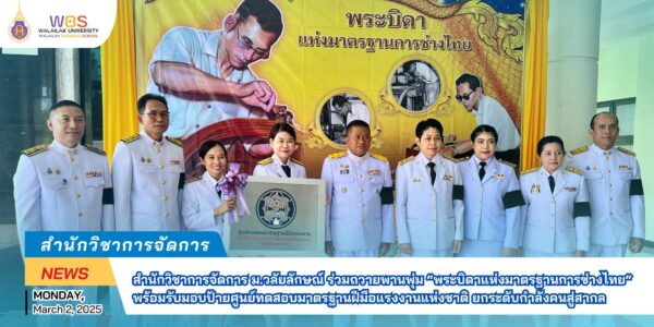 สำนักวิชาการจัดการ ม.วลัยลักษณ์ ร่วมถวายพานพุ่ม “พระบิดาแห่งมาตรฐานการช่างไทย“ พร้อมรับมอบป้ายศูนย์ทดสอบมาตรฐานฝีมือแรงงานแห่งชาติ ยกระดับกำลังคนสู่สากล
