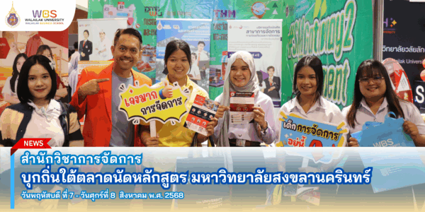สำนักวิชาการจัดการ บุกถิ่นใต้ตลาดนัดหลักสูตร มหาวิทยาลัยสงขลานครินทร์ วันที่ 7-8 สิงหาคม 2568 สำนักวิชาการจัดการ มหาวิทยาลัยวลัยลักษณ์ เข้าร่วมงาน ตลาดนัดหลักสูตร มหาวิทยาลัยสงขลานครินทร์ ณ ศูนย์ประชุมนานาชาติฉลองสิริราชสมบัติครบ 60 ปี จังหวัดสงขลา เพื่อประชาสัมพันธ์หลักสูตรการเรียนการสอน และแนะแนวก