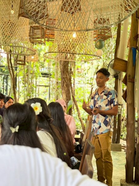 กิจกรรมเริ่มต้นด้วยการฟังบรรยายพิเศษจาก คุณพงษ์เพชร ไชยชมพู เจ้าของธุรกิจชื่อดังในพื้นที่อย่าง บ้านต้นไม้ Cafe and Restaurant และ Ma’s Sea Hotel โดยได้ถ่ายทอดประสบการณ์การบริหารงานภายใต้หลักการสำคัญ ได้แก่ Mindful Consumption การบริโภคอย่างมีสติ เพื่อลดการสูญเสียทรัพยากร และ Green Economy การขับเคลื่อนธุรกิจที่สร้างความสมดุลระหว่าง เศรษฐกิจ สังคม และสิ่งแวดล้อม นักศึกษาได้เรียนรู้ว่าธุรกิจท่องเที่ยวสามารถเติบโตไปพร้อมกับการรักษารากฐานของชุมชนและธรรมชาติได้อย่างเป็นรูปธรรม